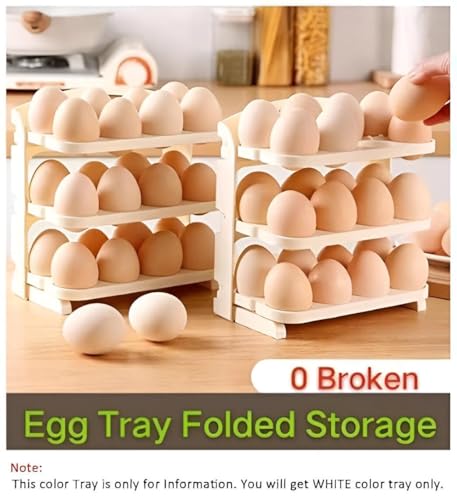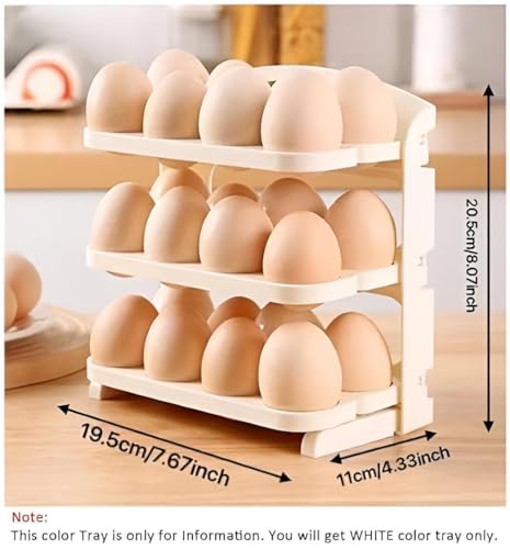- تحتوي العبوة على صينية بيض مكونة من 3 طبقات بسعة 24 بيضة بمقاس 19.5 × 11 × 20.5 سم. اللون أبيض، ولكن نود التنبيه بأن الألوان الظاهرة في الصور هي للتوضيح فقط وقد يكون هناك اختلاف بسيط في اللون الفعلي.