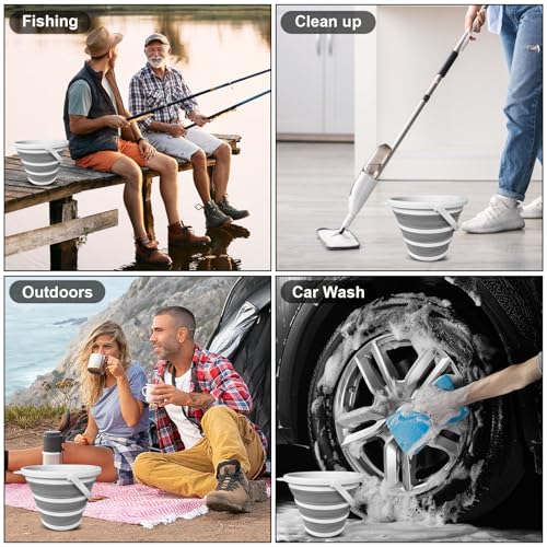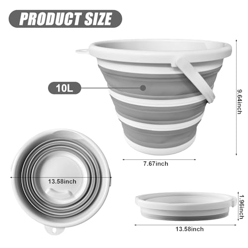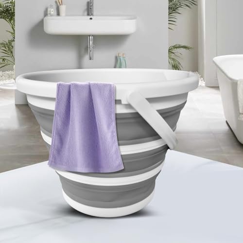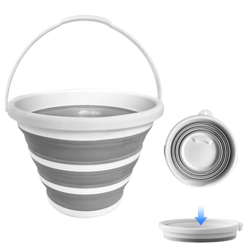QLEANZY - دلو مياه قابل للطي 10 لتر/2.6 جالون مع مقبض - دلو محمول ومتين وموفر للمساحة للتخييم والسيارة الترفيهية وغسيل السيارات وصيد الاسماك والشاطئ والاستخدام الخارجي