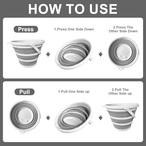 - تخزين سهل وموفر للمساحة: يمكن طي هذا الدلو القابل للطي بسعة 10 لتر حتى طول 2 انش فقط، مما يقلل من مساحة التخزين بنسبة تصل إلى 70%. مثالية للاستخدام في المنزل أو السيارة أو السيارة الترفيهية أو الهواء الطلق، ويمكن وضعها بسهولة في الخزانات أو الصناديق أو الخزانات. عند توسيعها، فهي متينة وواسعة وجاهزة للتعامل مع جميع مهامك اليومية بسهولة.