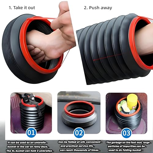 - توفر سلة مهملات السيارة القابلة للطي سعة واسعة 4 لتر، مما يجعلها مثالية للرحلات الطويلة حيث تميل النفايات إلى التراكم. على عكس صناديق التخزين القماشية الضخمة، يسمح تصميمها القابل للطي بسهولة التخزين عند عدم الاستخدام، مما يضمن الجزء الداخلي للسيارة مرتبة ومنظمة.