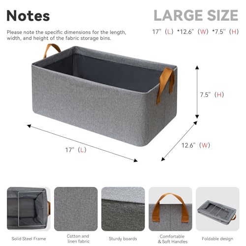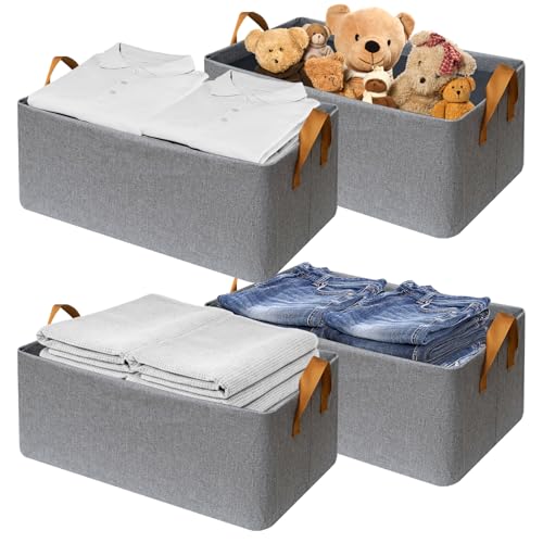 XYLFJCT - صناديق تخزين قماشية كبيرة قابلة للطي بإطار معدني، سلال تخزين لتنظيم الخزانة مع مقابض، للمنزل والمكتب، مجموعة من 4 عبوات، 43 سم طول × 32 سم عرض × 19 سم ارتفاع، رمادي