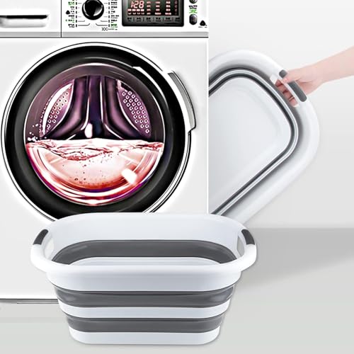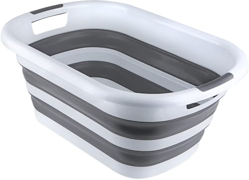 Generic - سلة غسيل قابلة للطي - سلة ملابس قابلة للطي بمقابض | سلة تخزين بلاستيكية موفرة للمساحة للغسيل والالعاب والتنظيم | متينة - محمولة - سهلة التخزين - رمادي وابيض