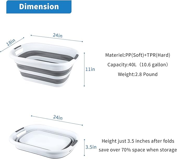 - تصميم قابل للطي موفر للمساحة - يمكن طي سلة الغسيل هذه بشكل مسطح في ثوانٍ، مما يوفر مساحة تخزين قيمة في الخزانات أو الرفوف أو تحت السرير.