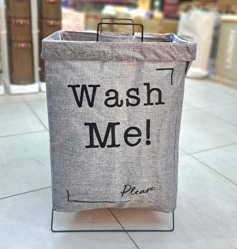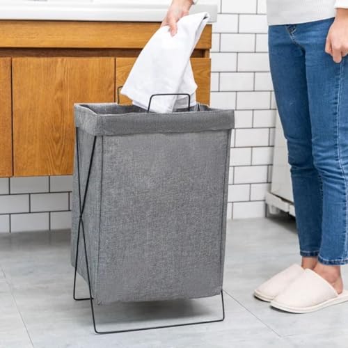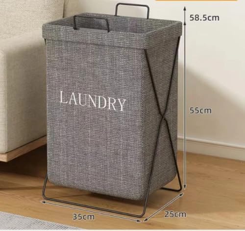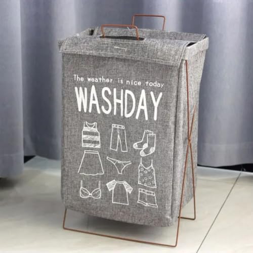 Generic - سلة غسيل قابلة للطي مع غطاء، سعة 75 لتر، كتان صناعي رمادي، تصميم واش داي، 43 × 33 × 53 سم