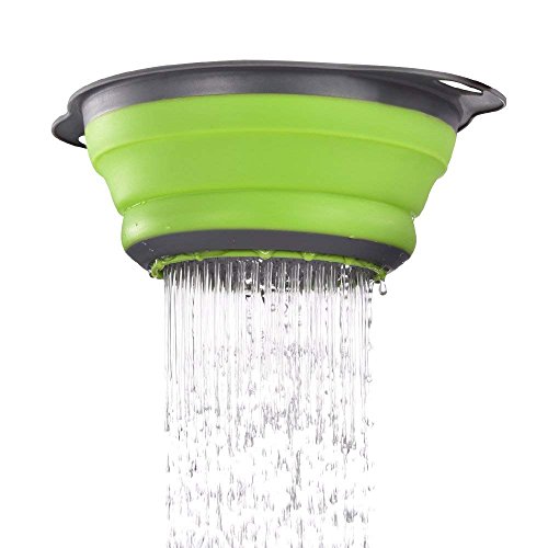 ZUOFENG - مصفاة سيليكون قابلة للطي، سلة فاكهة محمولة، توفر مساحة المطبخ، سهلة التنظيف، مقاس واحد، تتضمن 9.5 انش (لون اخضر، قطعة واحدة)