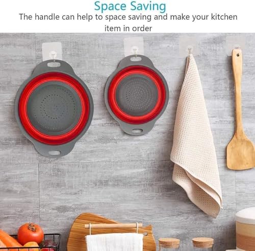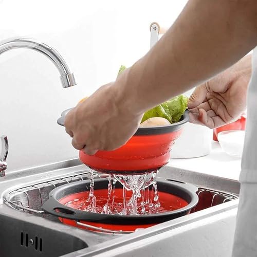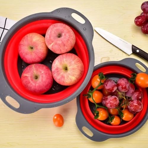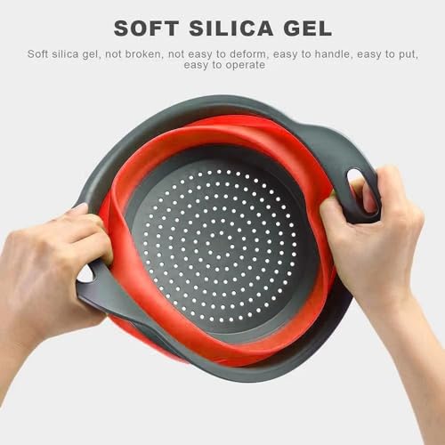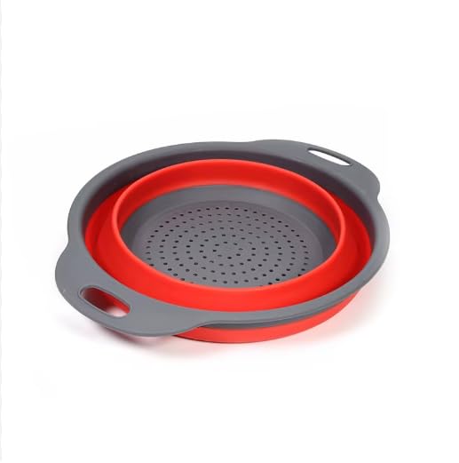 Generic - صفاية سيليكون قابلة للطي مع مقابض، مصفاة مطبخ دائرية باللونين الرمادي والأحمر، مصفاة خضروات وفواكه قابلة للطي
