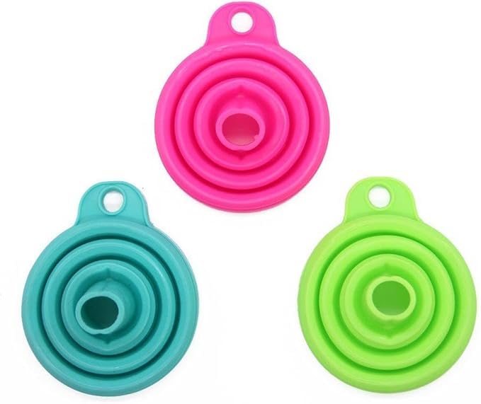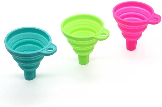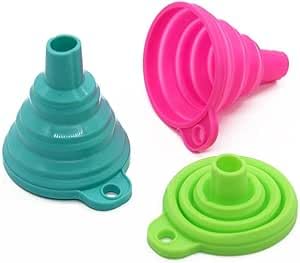 - مجموعة متعددة الاستخدامات: ثلاثة أقماع مختلفة الأحجام بألوان بينك وأخضر وأزرق مخضر مثالية لنقل السوائل والمكونات الجافة