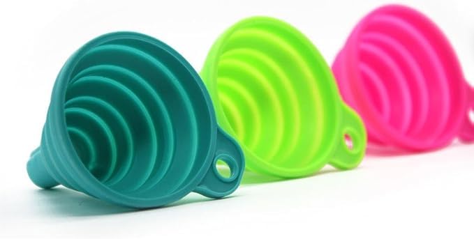 - تصميم قابل للطي: مصنوعة من السيليكون الآمن غذائيًا، يمكن طي هذه الأقماع بشكل مسطح للتخزين المدمج وتتوسع بسهولة عند الحاجة للاستخدام