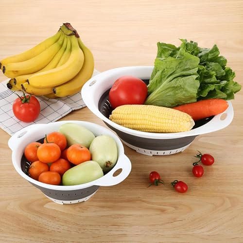 Generic - مصفاة قابلة للطي مع مقبض، مصافي سيليكون خالية من البيسفينول ايه، مصافي طعام بمقابض بلاستيكية للخضروات والفواكه للمطبخ، مصفاة قابلة للطي امنة للغسل في غسالة الصحون، رمادي