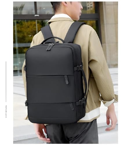 Generic - شنطة ظهر للاب توب متعددة الاستخدامات مقاس 15.6 انش بلون اسود غير لامع، مقاومة للماء، منفذ شحن USB، جيب رئيسي، جيوب داخلية متعددة، لوحة خلفية مبطنة، احزمة جيدة التهوية للحياة في الحرم الجامعي