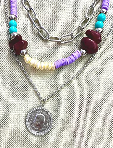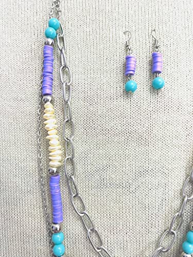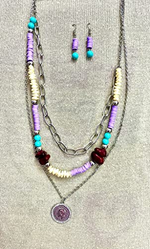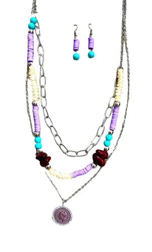 Generic - كولية هاند ميد طويل 3 ادوار من الاحجار(ومعه حلق هديه) ومناسب للهدايا القيمة، أبيض، مواد مختلطة، للنساء
