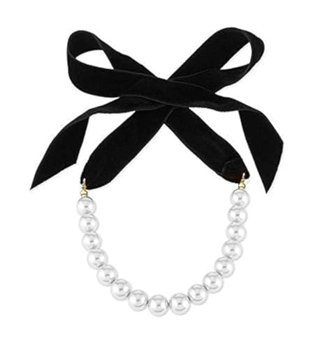 Other - كوليه من خرز الاكريلك الابيض ورباط من القطيفة السوداء، للنساء