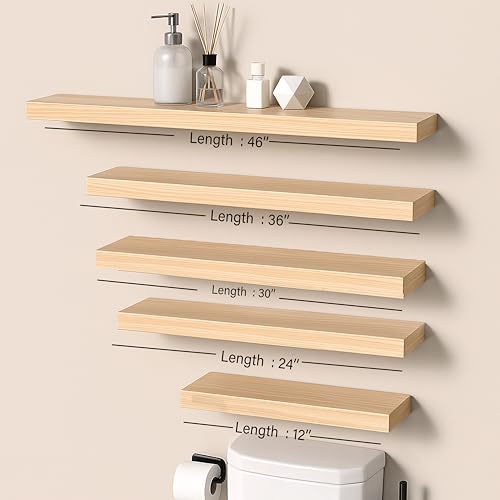- رف عائم من الخشب الأصلي النقي، مثالي لديكور المنزل الأنيق والتخزين الموفر للمساحة في أي غرفة.