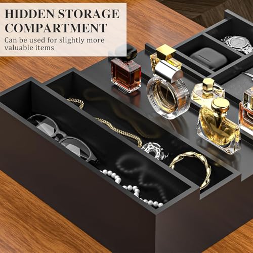 Sephyroth - صندوق تخزين كولونيا للرجال من 4 طبقات، حامل عرض العطور مع درج تخزين، تخزين خشبي ممتاز، هدية مثالية للرجال (اسود)