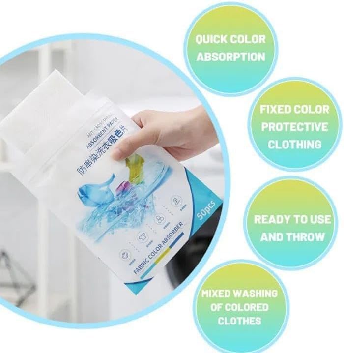 Generic - أوراق غسيل لامتصاص الألوان من 50 قطعة، أوراق ماصة للصبغات لمنع نزيف اللون وانتقاله، آمنة لجميع الأقمشة والغسالات، عبوتين (100 قطعة)