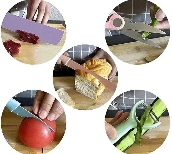 - تتضمن هذه المجموعة المكونة من 6 قطع أربعة سكاكين متعددة الاستخدامات ومقصات مطبخ حادة ومقشرة خضروات يدوية، تغطي جميع احتياجات الطبخ اليومية بدقة وراحة.