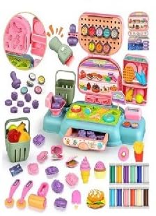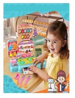- إكسسوارات مبتكرة: تتضمن عجينة لعب ملونة وأدوات تشكيل تسمح للأطفال بابتكار مواد غذائية تظاهرية لمغامرات التسوق الخاصة بهم