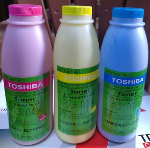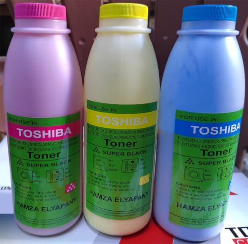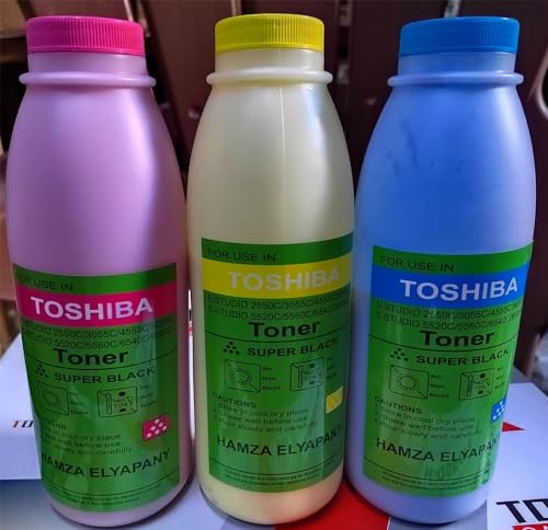 Generic - مسحوق حبر ملون قابل لإعادة التعبئة من توش ايبا، 4 ألوان (سماوي، أرجواني، أصفر، أسود)، 200 جرام لكل منها، ينتج 6000 صفحة، يناسب موديلات اي-ستوديو 2550C، 3055C، 4555C، 5055C، 5520، 5560C، 6540C، 6550C