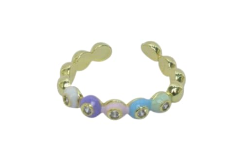 Generic - خاتم مفتوح من الستانلس ستيل بتصميم دوائر ملونة - ذهبي