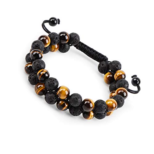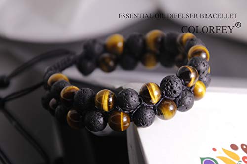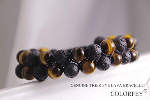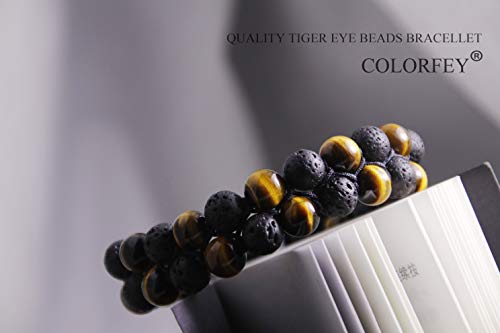 COLORFEY - سوار خرز من حجر عين النمر واللازورد احجار كريمة طبيعية بنمط بوذا للطاقة والشفاء والتبت للرجال لون اسود من كولورفي, كريستال, زجاج بركاني