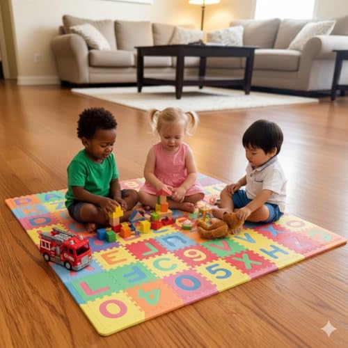 - 2️⃣ حماية وأمان للأطفال: مصنوعة من مواد فوم ناعمة ومرنة، توفر الأرضية حماية كاملة للأطفال أثناء اللعب، الزحف أو الجلوس، مما يقلل خطر الإصابات والخدوش، ويجعلها مناسبة للأطفال من جميع الأعمار، مع سطح مضاد للصدمات يمكن الاعتماد عليه في كل الأنشطة اليومية للطفل في المنزل أو الحضانة.