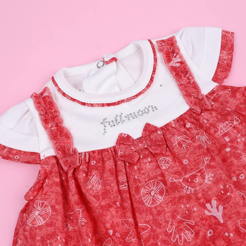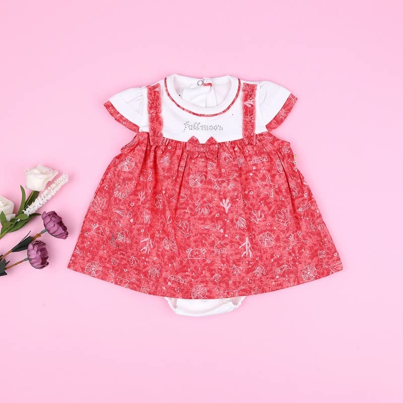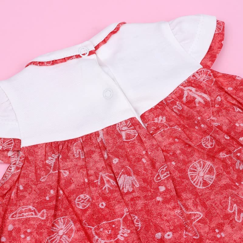 Generic - فستان اطفال ملون مصنوع من خامات عالية الجودة بتصميم بسيط ورقيق - لون احمر جذاب، مقاس لعمر 3 اشهر
