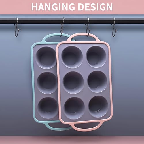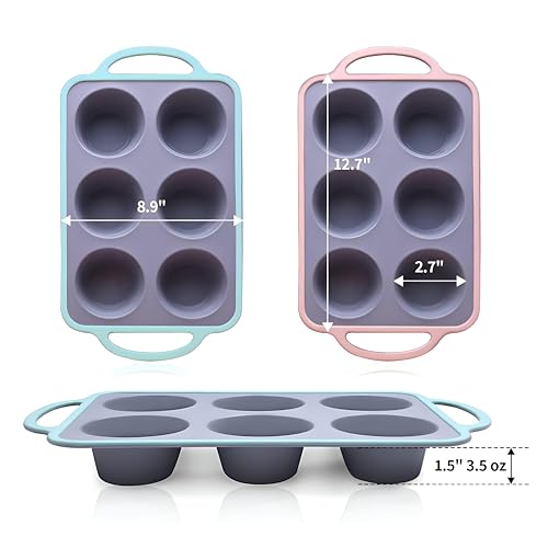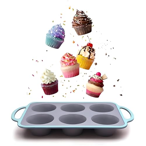 Generic - ادوات خبز ملونة - صينية مافن من السيليكون مكونة من 6 اكواب بمقابض داعمة، سطح غير لاصق، 12.7 × 8.9 انش، مزيج زهري وازرق (ازرق)
