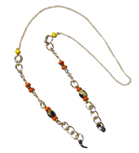 Generic - سلسلة نظارات بخرز ملون، حلقات معدنية ذهبية وفضية، خرز برتقالي وأصفر، تصميم عصري