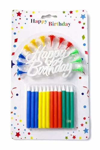 - مجموعة كاملة لعيد الميلاد: تتضمن زينة كعكة "Happy Birthday" بيضاء و12 شمعة عيد ميلاد متعددة الألوان بألوان زرقاء وصفراء وبرتقالية وخضراء نابضة بالحياة للاحتفال الاحتفالي