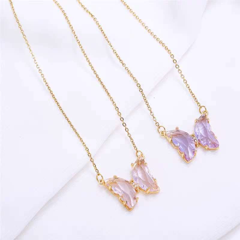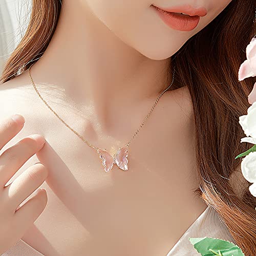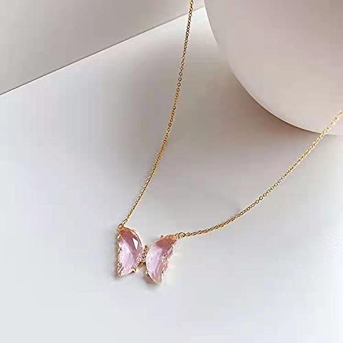 COLORFUL BLING - سلسلة بدلاية فراشة ذهبية مطلية بالذهب عيار 18 قيراط للنساء من كولرفل بلينج شكل احجار الزركونيا المكعبة صغيرة الحجم كريستال لطيفة والفتيات