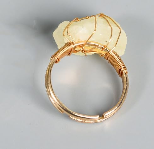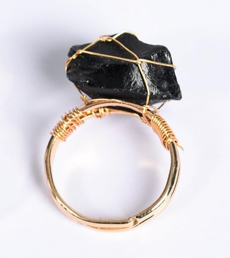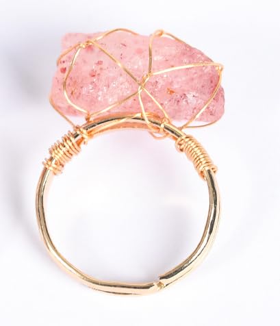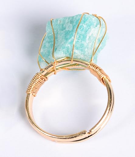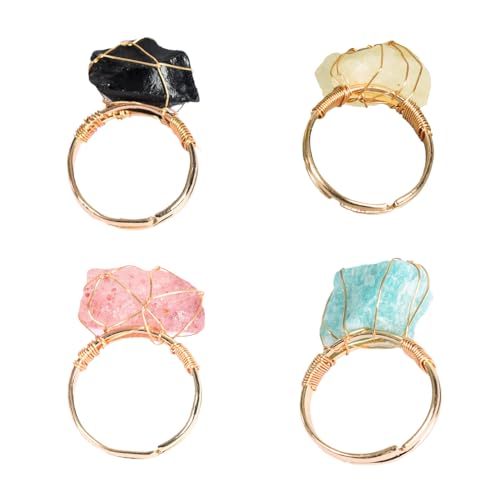 COLORFUL BLING - كولرفل بلينج خاتم من الحجر الطبيعي والكريستال الخام سلك نحاسي ملفوف باحجار كريمة غير منتظمة قابلة للتعديل مجوهرات للنساء والفتيات - مجموعة 4 قطع B معدن
