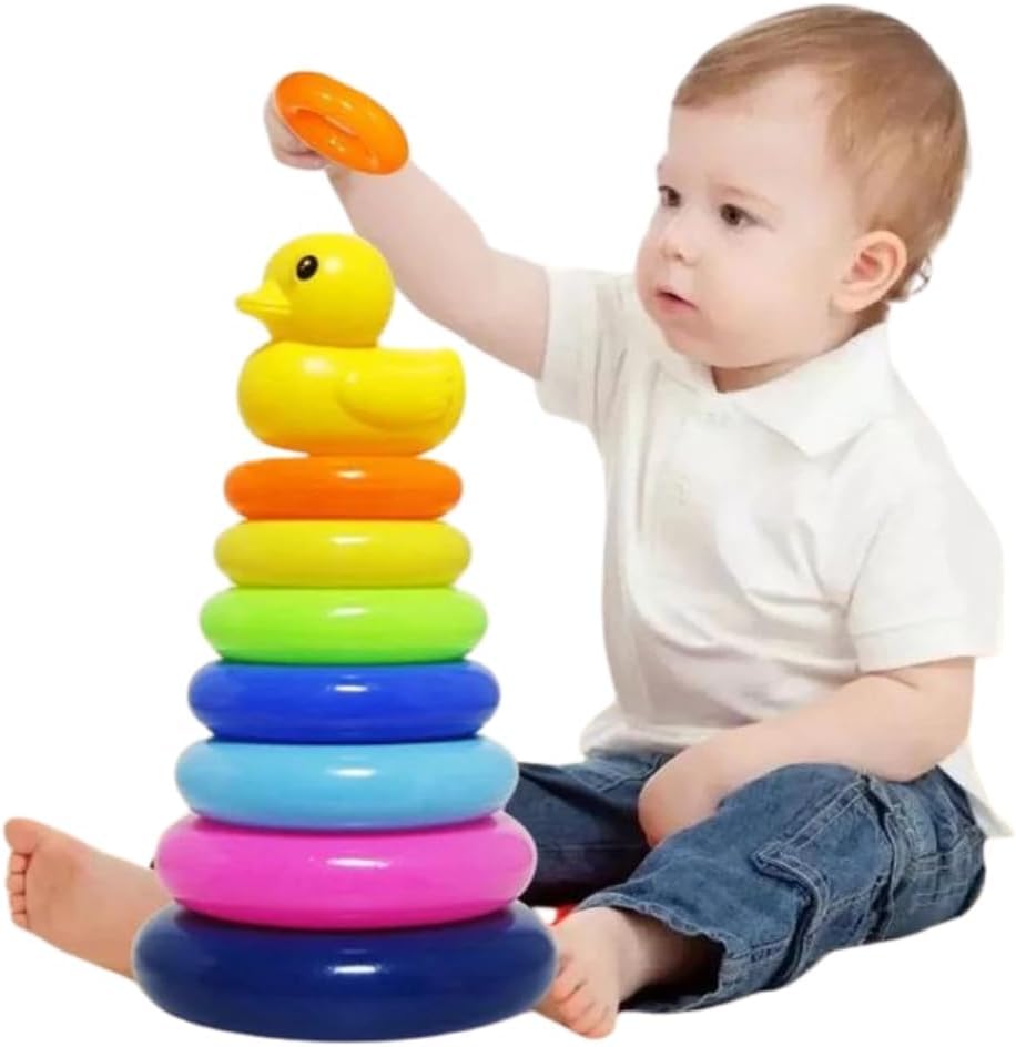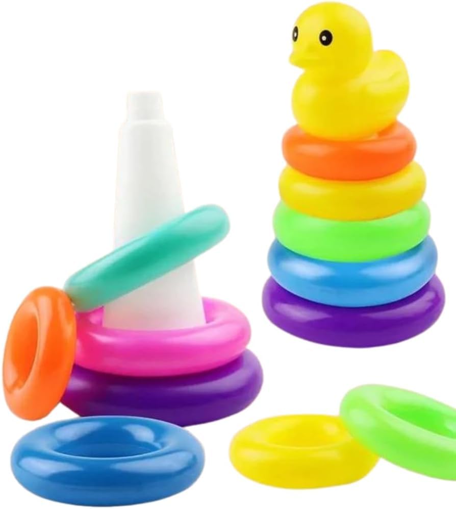 - حلقات ملونة وجذابة: ألوان زاهية تجذب انتباه الطفل وتعزز الإدراك البصري.