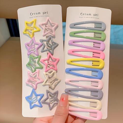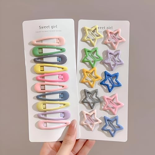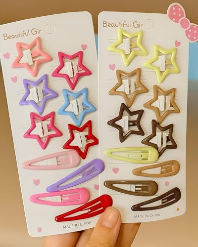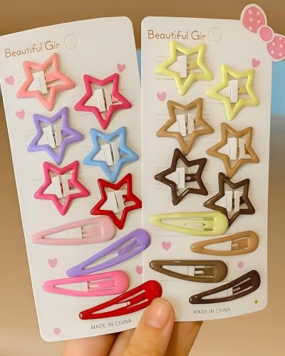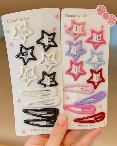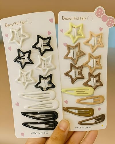 - تتميز إكسسوارات الشعر هذه بتصميم مرح مع مشابك على شكل نجمة ومشابك كبس كلاسيكية، مما يضيف لمسة غريبة إلى أي تصفيفة شعر. يعزز التصميم المفتوح لمشابك النجوم مظهرها المرح، مما يجعلها مناسبة للارتداء اليومي الكاجوال أو المناسبات الخاصة.