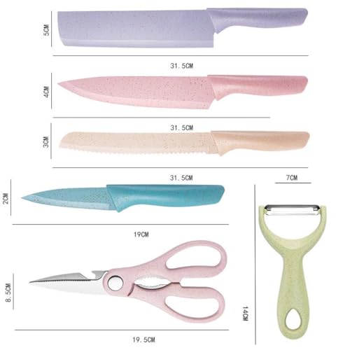- ألوان نابضة بالحياة: تتميز مجموعة السكاكين المكونة من 6 قطع بشفرات مموجة مذهلة ملونة بألوان قوس قزح، مما يضيف لمسة ممتعة وأنيقة إلى مطبخك.