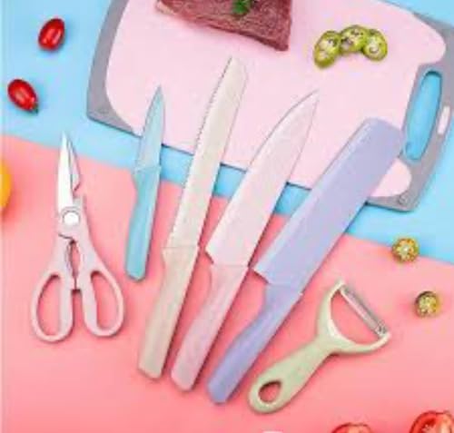 Generic - مجموعة سكاكين مطبخ ملونة ذات شفرات مموجة، مجموعة من 6 قطع