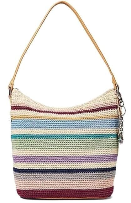 Generic - شنطة يد كروشيه ملونة - حقائب كتف للنساء والبنات -بسوسته - يد جلد قوية قابلة للتعديل