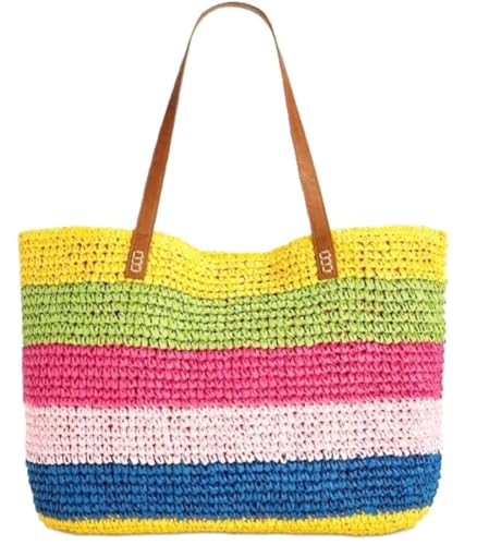 Generic - شنطة كروشيه ملونة توتس للبنات- مقاس 40X28Cm - يد جلدية مقاس 65سم - تغلق بسوسته