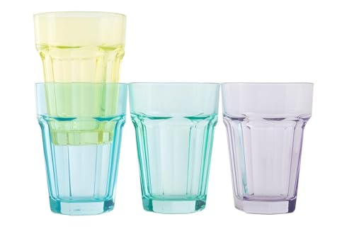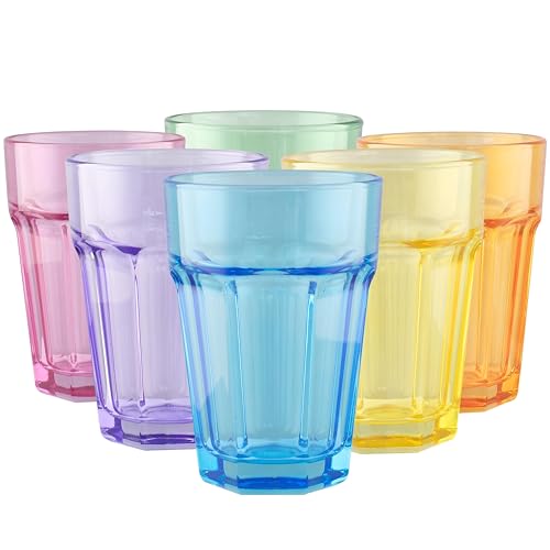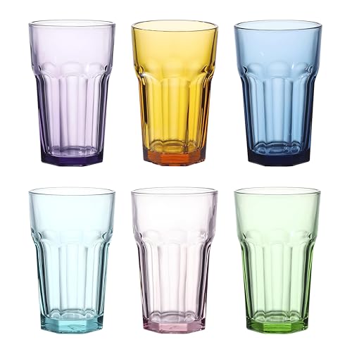 Generic - ادوات شرب ملونة - مجموعة مشرقة من الاكواب الطويلة من الماء والعصائر والكوكتيلات والميلك شيك، مثالية للاحتفالات والمرطبات اليومية متعددة الالوان (كوب سعه 300 ملم)