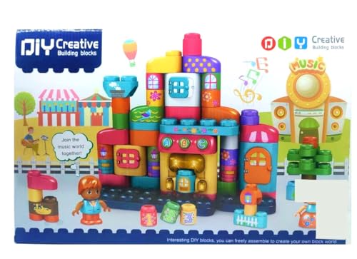Generic - مجموعة مكعبات بناء منزل العائلة الملونة مع موسيقى واضواء - (65 قطعة - FZ-8009)، بلاستيك