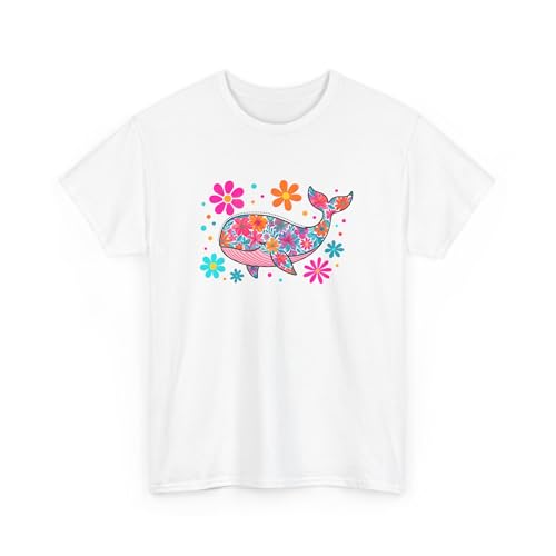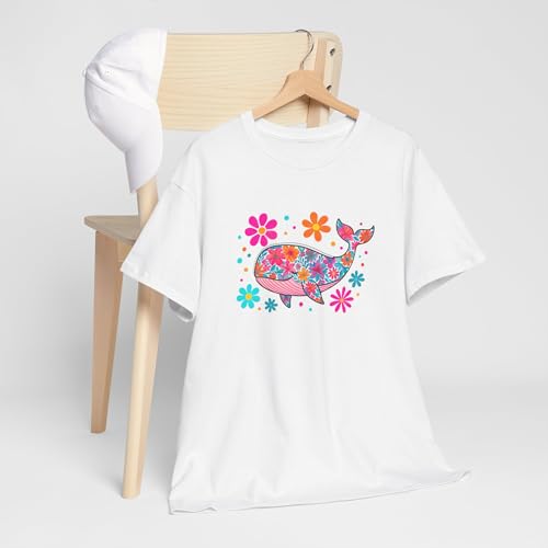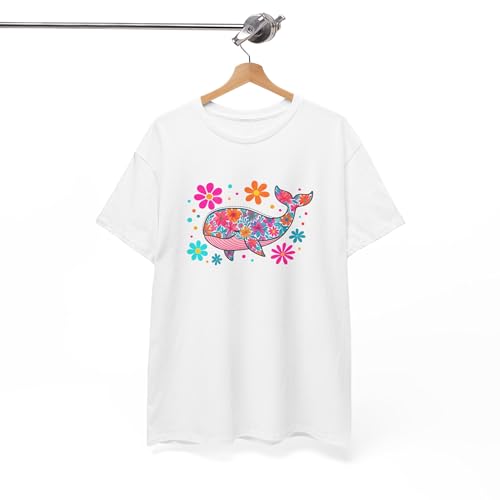 Generic - Colorful Floral Whale T-Shirt | Artistic Ocean Animal Graphic Tee Short Sleeve Unisex T-Shirt تيشيرت حوت ملون بالزهور