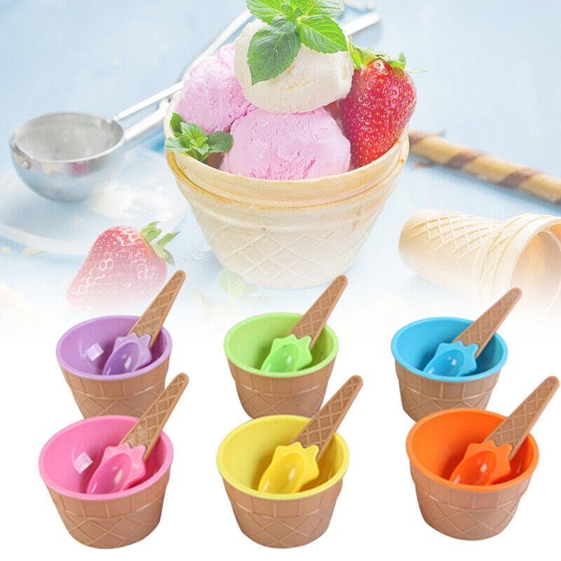 - 🎁 أكواب آيس كريم بلاستيكية قابلة لإعادة الاستخدام مع ملاعق، مثالية لحفلات الأطفال.