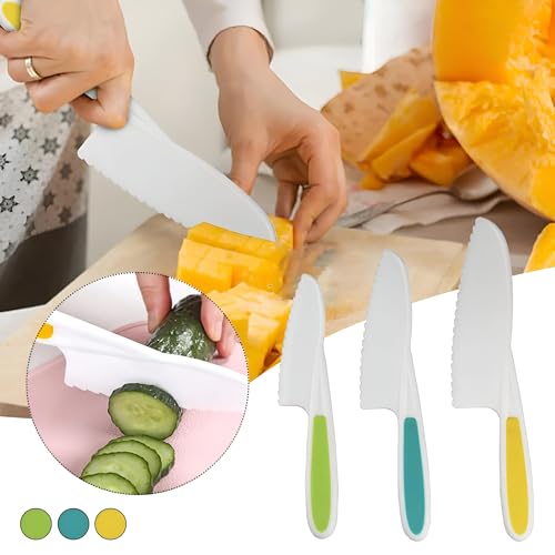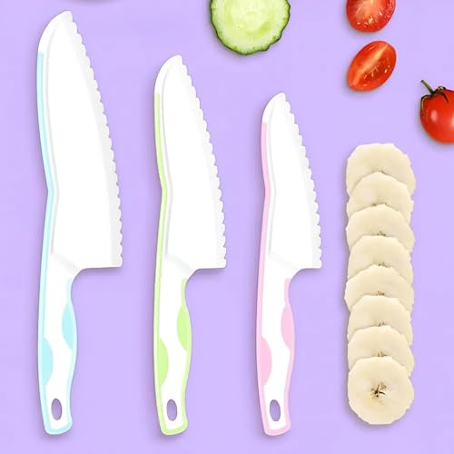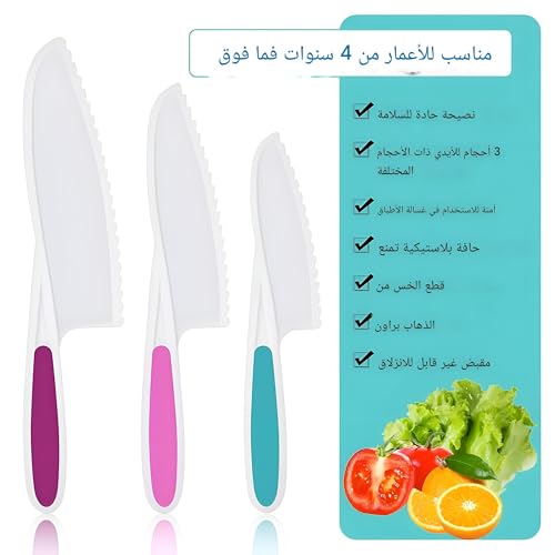 Generic - قطاعة شرائح ملونة للمطبخ - سكاكين الحماية للأطفال، مصممة بثلاثة ألوان زاهية مع مقابض سهلة الإمساك وحواف مسننة لتشجيع الأطفال على تعلم تحضير الطعام بأمان