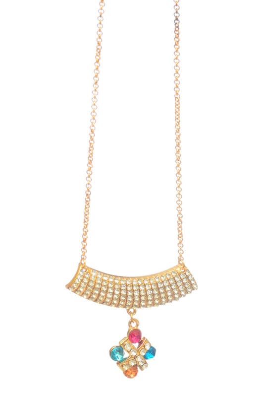 Generic - طقم سلسلة مع حلق مرصع بأحجار ملونة للنساء، 3 قطع - متعدد الألوان