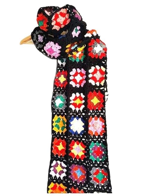 Generic - شال كتف كروشيه ملون مستطيل - صناعة يدوية 100% من خيوط ناعمة - أوشحة شتوية أنيقة للنساء