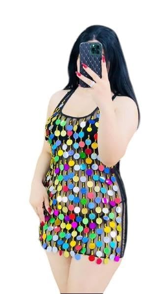 Generic - فستان حفلات قصير بترتر ملون | تصميم شفاف بياقة رسن | فستان صيفي مبهج
