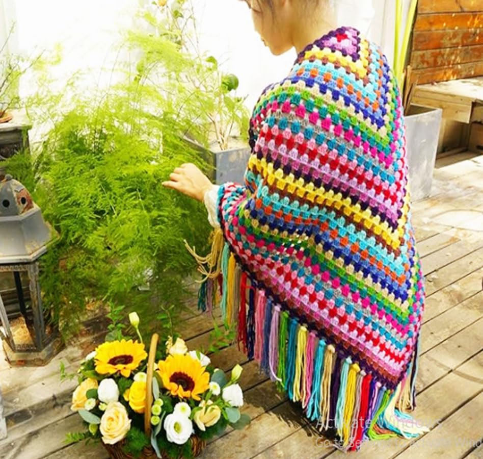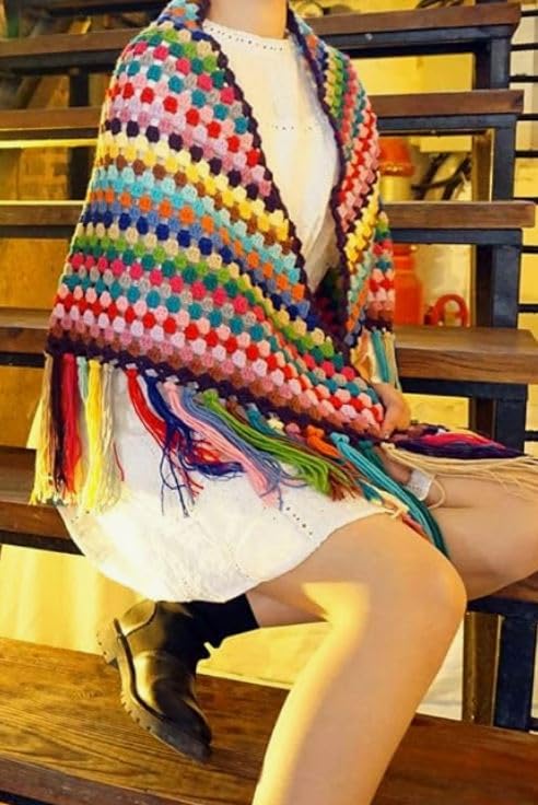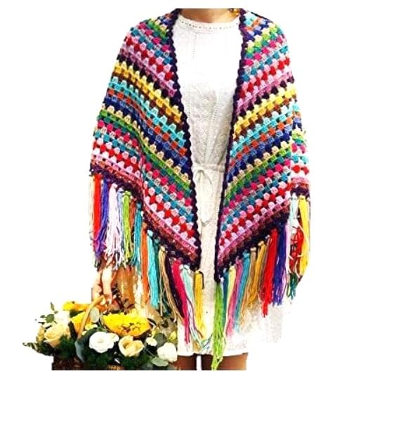 Generic - شال كروشيه بونشو ناعم ملون - مقاس كبيـر 180X90Cm - صناعة يدوية 100% - مناسب لجميع الأعمار