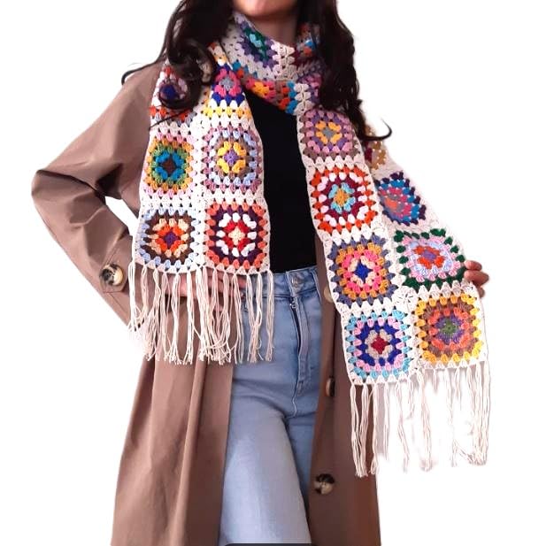 Generic - شال ملون ناعم كروشيه للبنات - صناعة يدوية 100%- استايل بوهيمى