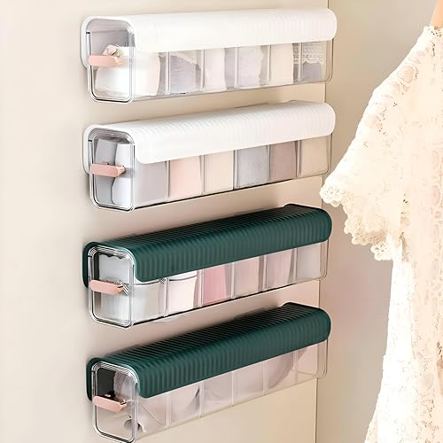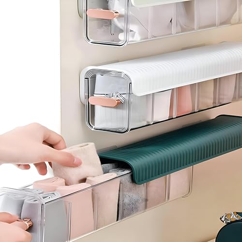 Generic - حل تخزين ملون - صندوق شفاف يثبت على الحائط مع 6 مساحات تخزين متحركة لاكسسوارات الملابس والجوارب وتنظيم جانب السرير