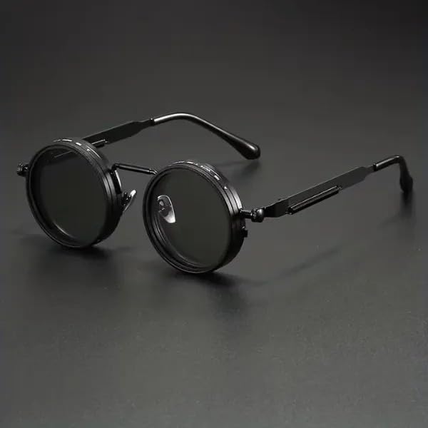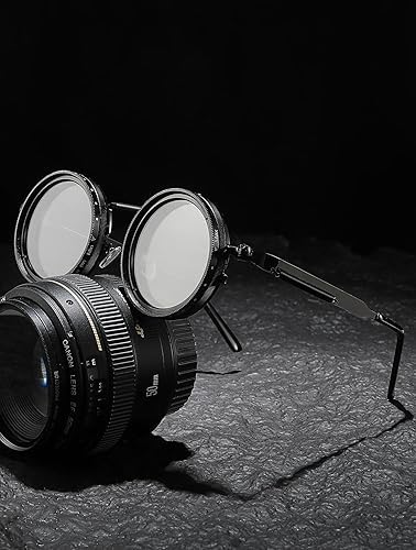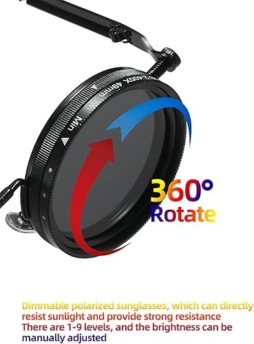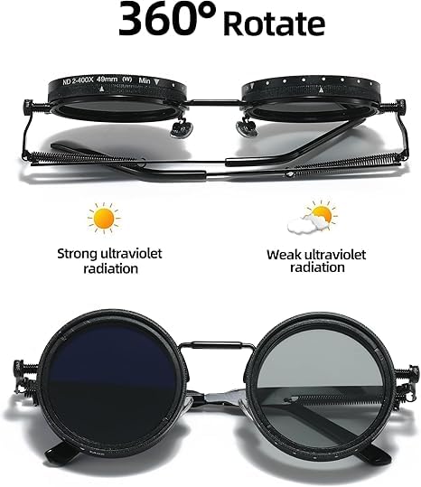 Generic - نظارات شمس ملونة بعدسات قابلة لتعديل التعتيم، بتصميم دائري معدني بأسلوب كلاسيكي، مزودة بعدسات مستقطبة بفلتر مع 9 مستويات ضبط