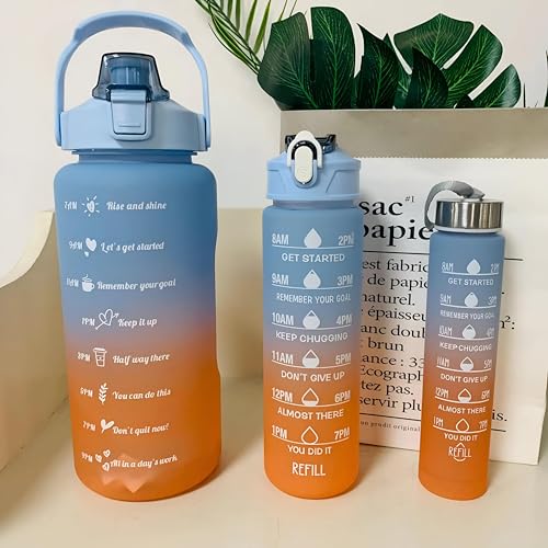 Generic - مجموعة زجاجات مياه ثلاثية ملونة كاملة بتصميمات سهلة الحمل وقشتين، تتضمن هذه المجموعة النابضة بالحياة المكونة من 3 زجاجات زجاجة سعة 2 لتر و1 لتر و0.5 لتر